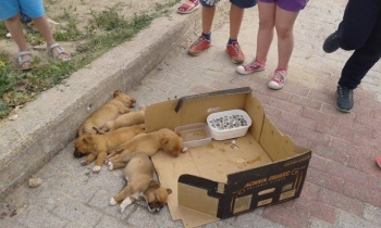 εγκατέλειψε τα πέντε κουτάβια που βλέπετε στις φωτογραφίες μέσα σ’ ένα